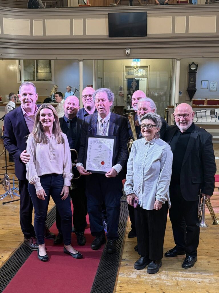 At last night’s concert with The Wallace Collection at Stockbridge Church, the Royal Philharmonic Society (RPS) presented one of its highest honours — RPS Honorary Membership — to legendary trumpeter and music education champion John Wallace.